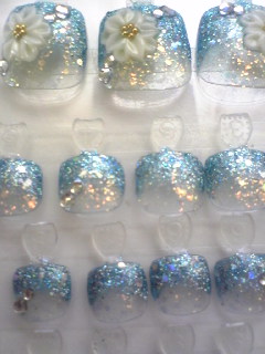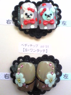 ペディチップを作って貰いましたー!指だとあんまり遊べないけど、ペディならこのくらいの可愛いのも平気(*^^*)次は猫チップ作って貰おう♪すみれいろネイルでもチップをオーダーしました。2つ。手持ちのベース色に合うのが無くて、無難な2セットになっちゃいました。ピンクのは、いつかのシャネル表参道限定色のピンクにぴったり合いそう!本当はこれが欲しいんだけど、ブルー系は薄いブルーと紺とガンメタブルーしかないので諦め。Tinsの005番あたりが合うと思うんだけど、ベース色教えてもらうほうが早いかなぁ。ピンクのサンダル買ったから、次はこれ!オーダーします。ペディチップはサイズが合わないと、チップばればれで最悪なので、サイズ測定用のチップペディ用 サンプルチップで測定するといいデスヨ♪ぴったりのチップを選べば、サロンでアートしたように綺麗に仕上がります♪私は足の爪の形が良くないので、自爪にアートするより、チップのほうが綺麗に仕上がるんですよねー。サンダルも自信持って履けるし、オススメで~す。