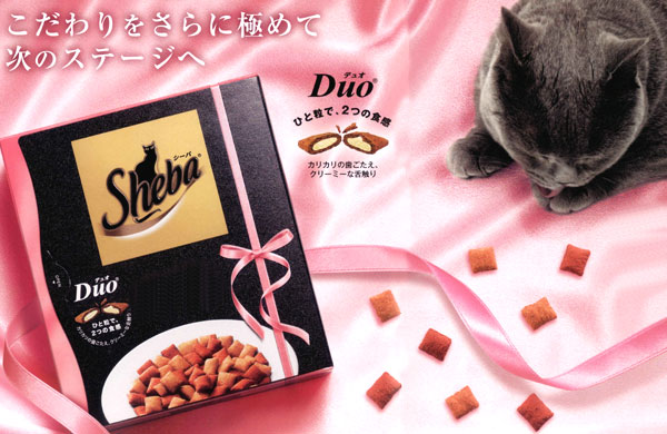 新しいシーバのCMを見た時は、な、なんでぴのがCMに?!?!!…('A`)ってビックリするくらいそっくりでした…。うちのぴのたんと同じ、ブリティッシュショートヘアの猫ちゃん♪むっちりしたボディと愛嬌たっぷりのお顔がたまらんです。新しいシーバ、早速買い占めました。中でもお気に入りはこちら!デュオ!シーバ デュオ(Sheba Duo) 香りのまぐろとクリーミーチーズ味パッケージを開けると、ぴの…じゃなくブリティッシュの猫ちゃんの写真が♪サイエンスダイエットやミャウミャウなど普段のご飯の時とは食い付きが違います。ご飯残ってるのに、うにゃーうにゃーダダこねる時は、大体シーバのおねだり…。食べ終わると、お気に入りのキャリーの中で寝んねします。自分でちゃんとフタもしめてるし。