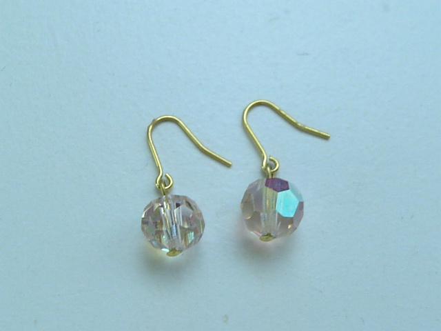 以前、アンティークミュージアムに行った際に、19世紀に作られたと言うアンティークのクリスタルを頂きました。ビーズ状になっていたので、ピアスを作ってみたんですが、現存のスワロとカットは同じなのに、微妙に虹色がかっていて綺麗(*^^*)一粒でもキラッキラで存在感大!です。随分金具が安くなりましたね。前は、18Kのピアス金具は高くて既製品を買ってバラすほうが安かった(笑)