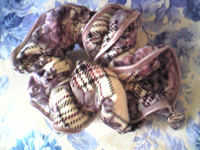 シュシュ福袋が届きましたヾ(´ー`)確実にシュシュコレクター化しているので、シュシュ福袋なんて無いかしら…と呟いていたらこぐまが見つけてきた!5個で500円?!メール便送料無料!同梱も可!柄は、1つだけ選べます。私はやっぱりヒョウ柄!!!即決!5個とも可愛い~!夏らしいのが3個、サテン風のが2個で、どれも好み!あまりに可愛かったので、もう1回買ってみました。Fが良かったけど売り切れだったので、Bに♪わ~楽しみ~。今日はヴィオレッタのシュシュ福袋が届きます。こちらは、きっとボリュ~ミ~な秋冬シュシュが入ってると予想してるので、夏シュシュ収集をもうちょっと続けよっと。ねいるやさんの同梱で、これのグリーン取り置き中。そう言えば、これも買ってるんだけど、金メダル福袋と同梱しちゃったので発送はずっと先。通常発送の場合、明日明後日には着くんですね~。今日も天然クロワッサン巻き髪に成功したので、シュシュで高めのポニーにしています♪