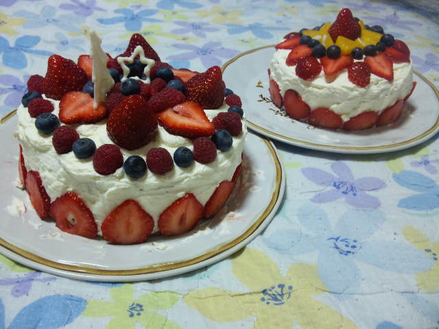 今年のひよこ家クリスマスケーキは…手作り!!ベリーもりもりケーキでーす。あ、手前のがこぐま作で、奥のカオスケーキがひよこ作です。家族にも一発でバレました。こっちがひよこのでしょ!! って…(´△`)ま、クリーム塗るときだけ物凄く真剣にやってましてね。モクモクと作業してたんですけど飽きてきてフルーツ乗っけるのは面倒になって、ポイポイ乗せて終わり。適当すぎました、ハイ。あ、フルーツ切るのは全部ひよこ担当です。大昔ケーキ屋でバイトしてクリスマスケーキ何百個も作って(るのを見て)たのでこれはちょっと上手くいった(ような気がする)!あ、でもバイト時代フルーツ切ってないや!やったのは箱折っただけだった!あっはっは。こぐまは適当にやってもキレイに仕上げるもんだなぁ。ケーキは1人半ホール食べました。で、お寿司をお腹が破裂する直前まで食べて幸せなクリスマスでしたん(´▽`)