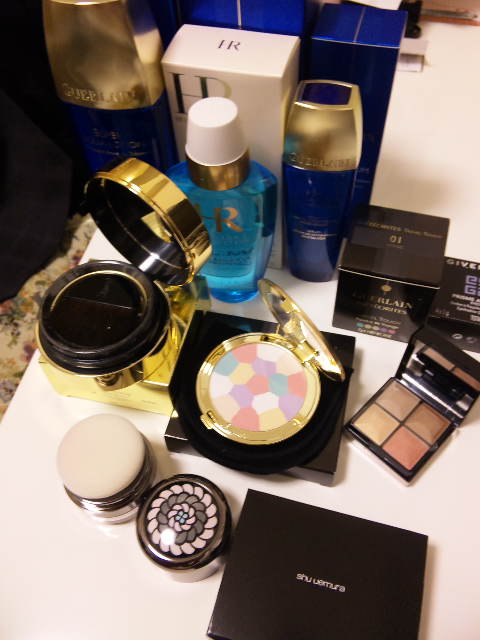 プレコハウス、コスメリンク、コスメキャンティで買ったコスメが到着でーす。(本当はもう1店舗分あるのですが、宅配ボックスに幽閉されてます…)クレンジングからグロス、口紅、マスカラなどなど勢ぞろい!このセミルースパウダーは前から使ってみたかったので半額で嬉しい!メーカー希望小売価格 7,140円 →キャンティ特価 3,180円 ヘレナのマスカラを買ったので、リムーバーもヘレナにしてみました。先週ランコムのマスカラ買ったので、もちろんリムーバーも同時購入(笑)同メーカーのほうが落ちやすい。あまりに良かったので、母親にプレゼント。ゲラン スーパーアクアローションN同ラインの美容液も買ってみました。ゲラン スーパーアクアセロムN50ml メーカー希望価格 28,770円 →価格 9,660円 この値段なら気軽に買えちゃう。化粧水→美容液 これだけで充分しっとり!まだクリーム類は持ってないので、手持ちのを足してます。これ、高校生の頃カウンターで見てから持つのが夢でした~(笑)ゲラン レメテオリットヴォワイヤージュコンパクトまさかの半額!美しさに感激しましたよ。ゲラン メテオリットパウダータッチ#01 ギラギラしすぎないので気に入ってます。チークの上からハイライトがわりにも。最近ジバンシーもお気に入り。下段にチップ類が入ってます。ジバンシー プリズムアゲインアイズ #02ブラウン・カレスメーカー希望価格 6,825円 →価格 2,640円 プレゼントにもいかが?!これからどんどん寒くなって、外に出るのがイヤ~になりますが可愛いコスメを使ってウキウキ頑張りましょうー!
