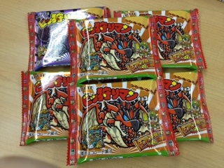 2014年3月29日ビッ狩りマンチョコ発売!楽しみに待ってました~!ゴッソリ買いました。やったー!プーギーが出た!あと激昂ラージャンも!ビッ狩りニャンが欲しいなぁ・・ビックリマンって当時いくらでしたっけ・・30円くらいじゃなかったっけ。これ100円以上したので、1箱買うとかは躊躇してしまった(笑)