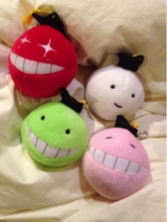 2014年3月3日殺せんせーのぬいぐるみ(^^)可愛い~!4つ並べておこ~と・・ ってあれ?!気づいたらぴのがコローンコローン転がして遊んでました(*_*)マッハ20の殺せんせーを転がすなんて恐ろしい子!