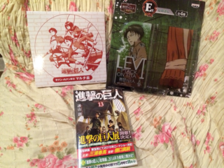 2014年4月9日今日は進撃の巨人13巻の発売日~!!ついでにマガジンと悔いなき選択のほうも買ってきた~!貸しちゃったから画像がない(笑)リヴァイ編。ネタバレしたくないから、内容には触れません!いや~~なんか、凄いです。セブンイレブンでキャンペーンをやっていたので、一番くじも引いてきました~。E賞のものさしだった(*_*)あと、ドリンク2本買うとお皿もらえました☆あ~~~早くアニメの2期始まらないかな~。去年の今頃は毎週日曜日が楽しみだったなぁ~。