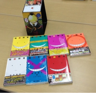 2014年2月24日漫画喫茶で背表紙の「暗殺教室」というタイトルを見かけて・・バトルロワイヤルみたいな内容かな!!わくわく!!と手に取ってみたら!表紙を見てびっくり(*_*)なんか丸い!あー、そうか。こいつが超電子生命体かなんかで、生徒を操って殺戮が繰り広げられるのね!と妄想。よーし1巻読んでみよー。・・なんか和やかー殺戮しなーいってことで、全然想像とは違いましたが、面白かったので1巻で読むのをやめて、買ってきちゃいました(´▽`)殺戮はないけど暗殺はあります!穏やかな暗殺なのでご安心を!血しぶきなんぞ出てきませんので!全巻揃えたら、殺せんせーのボックス貰えました。かわいーなー殺せんせーが担任だったら学校面白そう。すぐ手入れされそうだけど。アニメ化や映画化が楽しみですねー。電子書籍は100円で読めます☆