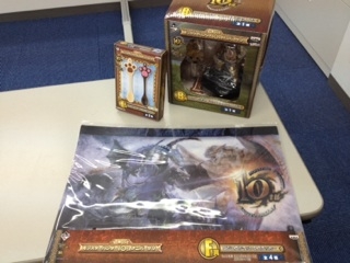 2014年3月28日一番くじやって、B賞のフィギュアが当たったよ~!あと、欲しかった肉球スプーンも!(´▽`)マットは職場で使ってまーす。デスク周りが傷つかなくて安心☆アイルー可愛い・・ぬいぐるみ欲しかった!