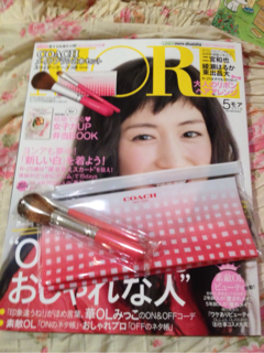 2014年3月30日今月のMOREに可愛い付録が付いていたので買っちゃいました☆コーチのブラシセット!新作のバッグと同じ柄なんですね~可愛い!ミニブラシは職場用にちょうど置いておきたかったからピッタリだ~。どんだけ職場に化粧道具置いてあるんだ!って突っ込まないで!朝が弱いので、UVケアだけして出勤なんてしょっちゅうなんですよ('_')ビニールケースはペンケースにもなりそう。可愛い付録嬉しいな~(´▽`)
