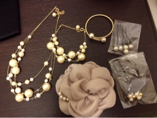 2014年3月20日パール中心に、ヘアアクセを買いました!お花はつけるか迷い中(笑)バッグにでもつけようか・・・真ん中にパールのお花も可愛い!ネックレスとブレスレットもパールにしました~!統一すると、ゴッチャリして見えないので良いです。髪型はアップにする予定なので、後ろとサイドにパールのUピンを散らします☆