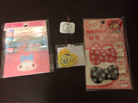 サンリオで買い物してきた(´▽`)その辺にピアスをぽいぽいしちゃうので、ジップ付のケースと~メイクするとき用の前髪クリップ!キティちゃんとマイメロと迷ったけど、もう大人だしリボンにしとこ~と変な妥協をしてしまった。よく考えたらメイク中なんて人前に出ないんだから、思いっきりキティちゃんでも良かったのに(笑)ってことで、次の機会に買い足そう(笑)それから、可愛いボトルのお水!これは持ち歩き用!リボンなの~可愛い~!(さっきもう大人だからってどうのこうの言ってたくせにコレだ)いいのいいの、熱中症対策なの!前に買ったキティボトルは結局未開封で冷蔵庫に保管してあります(笑)にほんブログ村