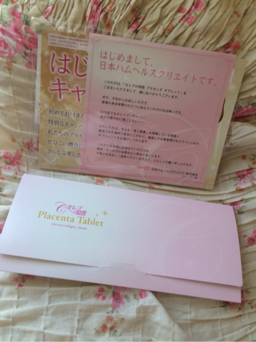 ドリンク、錠剤、と様々なプラセンタを愛用していますが、もっと手軽なものはないかな~持ち歩けちゃったりするのないかな~と探したら、面白い物を見つけました!食べるプラセンタというのに惹かれて、タブレット型のサプリを買ってみました!その名も「セレブの時間」まずはお試しセットを。定価は30日分30袋で9720円。1日3個、5日分で980円でした!{結構大きいです。ハイレモンとかヨーグレットと同じくらいの大きさです!(わかるかな)このままポンッと口の中に入れて、舐めるだけ。味はなかなか美味しいです。プラセンタ特有のにおいや味は気になりません!食後のミント代わりに3粒食べています。効果はどうかな?ドリンクと錠剤を飲むのをやめて、様子を見ているところです(´▽`)