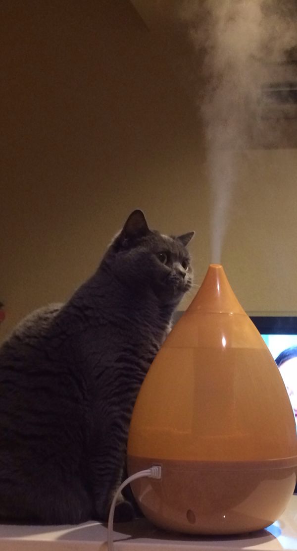 先月、リビング用に大きい加湿器を買ったのですが…ぴのが気に入って離れない笑保湿は大事だニャどこに置いても側にくっついて離れません!夜しかつけていないので、帰宅すると「コレつけてーーしゅわしゅわのー」ってスリスリして待っています(笑)か、かわいい(*_*)調べてみたら、猫にとっても病気予防に部屋を加湿するのは良いみたいですね。出てくるミストは冷たいタイプなので、かおに直接ガンガンかけて遊んでいるようです。ぴのってば自ら保湿するなんて…なんて意識の高いにゃんこなの(笑)かおだけでは飽き足らず、手(アンヨ)でちょいちょいして体にまでかけてるし!!毛並みにも良いのかなぁ…ぴの専用にもうひとつ買ってあげようかな(´▽`)本当はアロマオイルとか入れたいんだけど、ぴのに良くないので一切使っていません。水のみ!!