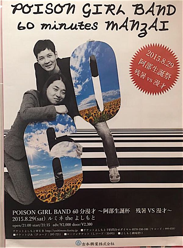行ってきましたよ~~~!ポイズンの60分漫才!!!!前回も前々回も行けなくて、絶対に絶対にこれは行く!!と固い決意で挑みました(´▽`)すぐに予約したので席はかなり前のほう!ゆる~い感じでスタートして、もう楽しくて楽しくて60分も漫才するだけでも凄いのに、60分ずっと笑いっぱなしだったんですよ。お蔭で苦しくて酸欠になりました(笑)こんなに楽しいのに1回しか見られないなんて勿体ない。DVD化とかしてくれないかなぁ。映像化が無理なら音声だけでも!!お二人の声を聞いてるだけで楽しいんです!あ~~また行きたい!そして、阿部さんお誕生日おめでとうございます!