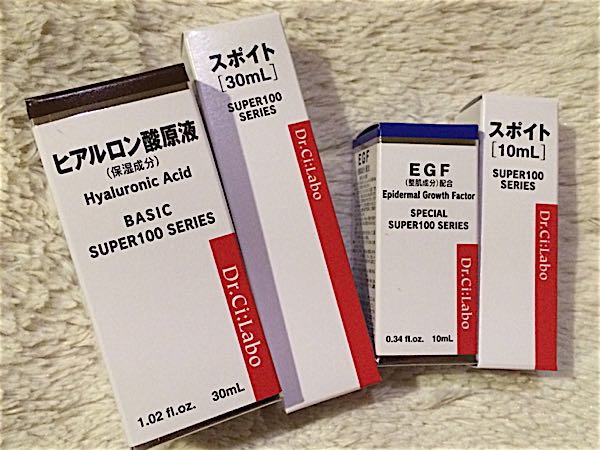 シーラボでヒアルロン酸の原液とEGFを買いました☆EGFはリピートです。毎月結構使うので定期便にしました。専用スポイトは定期便のプレゼントです。定価は各270円原液そのままでも、化粧水やクリームと混ぜてもOKです。私は化粧水のあとに、これらの原液をつけておしまい(笑)冬場など、もう少しみっちりお手入れするときは美容液とクリームを塗ります。化粧水、乳液、美容液、クリームっていうベーシックだけどきちんとしたケアは、週に2~3回だけにして普段は軽めにしています。メリハリをつけると、結構肌が丈夫になってくる気がします。乾燥もしないし、肌トラブルも今のところ無し。ヒアルロン酸は、とろ~りとした濃厚な液体です。2滴くらいを顔全体に塗っています。ヒアルロン酸 30ml 定期便で¥1,944→¥1,555スポイトをセットすると薬瓶みたいで可愛い。開封後は冷蔵庫保管です。EGFはさらっとしています。こちらも2滴くらいを塗っています。塗ってすぐ、肌がぷるーーっとするので好き。EGF 10ml 定期便で¥3,240→¥2,592普段使っているアイテムに足すだけで結構すぐ効果がわかるので、シーラボの濃縮液シリーズは気に入っています!定期便ならいつでも20%OFFなので、3回以上リピートする物は契約しちゃってます。同カテゴリ内ならアイテム変更も可能なのが便利です。ただ定期便解約は電話のみなので、アレコレ契約すると後々面倒ですよ(笑)