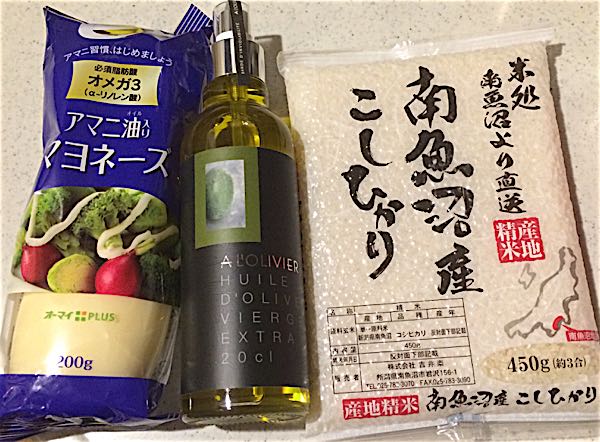 今日は食料品を大量購入!腰を痛めているので、重い物を持てないんです(T_T)なので配送サービスを利用しています(T_T)無料で家まで届けてくれるので助かります。ネットスーパーも良いけど、実際目で見て選びたい物なんかもありますしね。1週間くらいは、お母さんが料理を作って家まで届けてくれたのでちゃんとしたものを食べられていました。ありがたや。そろそろ自分でキッチンに立てそうなので、調味料や食材を買いだめ!スーパーは自由が丘ガーデンが好きで、よく行きます。ちょっと良い調味料が欲しいな~って時は必ずここ!話題のココナッツオイルやアマニオイルなんかもいち早く入荷していました(´▽`)お肉やお魚も安くて良い物が多いんですよ~。主婦には助かる。今日は新入荷のマヨネーズやオリーブオイルやらをたっぷり。アマニオイル入りのマヨネーズに惹かれて買ってみました。いつもは瓶入りの無添加有精卵マヨネーズを使っています。この魚沼産コシヒカリは絶品!1日で食べちゃったよ(笑)このスプレー式オリーブオイルはサラダやカルパッチョに使うと便利なんですよ!フランスの老舗オリーブオイルブランド「ア・ロリヴィエ」です。200mlです。ボトルもカッコいい。バルサミコスプレーもあるんですよ!こちらもお肉料理の時に便利。バルサミコのクリームソースも持っていますが、すぐドバーっと出してしまうので(笑)他にもグレープシードオイルやアボカドオイルやココナッツオイルや(オイルばっかり)スパイス類や醤油、キビ糖なんかも購入。カート山盛り。なるべく普段の食事でオメガ3脂肪酸など良質なオイルを採れるように気を付けています。サプリメントで補給もしています。アマニオイルはサラダなどにかけて採りますが、カプセルタイプも便利。飲むだけ!冬は特にオイルの有難味がわかります。いつでも乾燥知らず(^^)