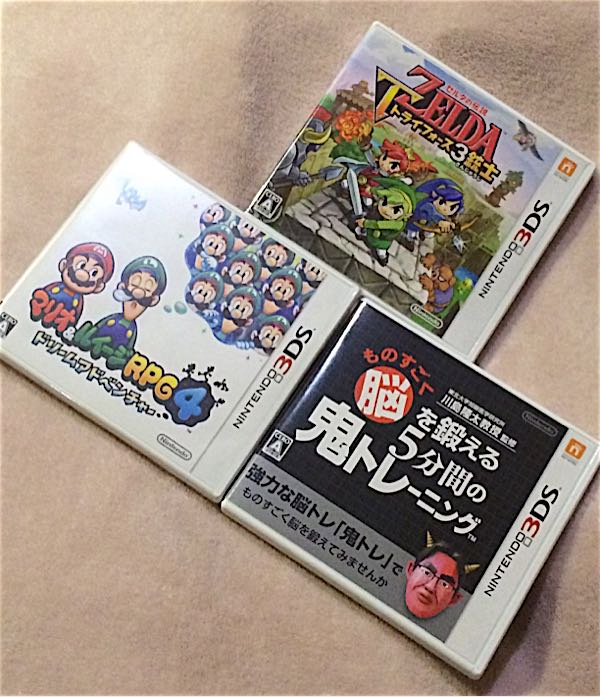 楽天ブックスでセールだったので、3DSのソフトを買いました!東北大学加齢医学研究所 川島隆太教授監修ものすごく脳を鍛える5分間の鬼トレーニング 3,908円→999円マリオ&ルイージRPG4 ドリームアドベンチャー 4,936円→1,000円ゼルダはこの前買ったやつ(^^)【楽天ブックスならいつでも送料無料】マリオ&ルイージRPG4 ドリームアドベンチャー価格:1,100円(税込、送料込)なんとー!1000円だったよー!送料無料!今は価格が変わって1100円だけど、それでも安い!新品ですよー。エンカウントバトルのマリオはちょっと新鮮でしたよ。やっぱりマリオは面白い!【楽天ブックスならいつでも送料無料】東北大学加齢医学研究所 川島隆太教授監修 ものすごく脳...価格:999円(税込、送料込)そして鬼トレ!!初代脳トレ、もっと脳トレは物凄くやり込んだ大好きなソフトです。家族みんなで対決して、記録を競い合ったっけなー。久々にトレーニングしたくなったので、買ってみましたが…鬼トレって言うだけあって、教授が本当に鬼です!!!!(T_T)こりゃ~いいトレーニングになりそうだ…あまりにも鬼なので、ついつい赤黒赤黒ばっかりやってしまいそう(笑)鬼計算5バック100%はみんなできるのかな?!私、相当危なっかしいんですけど(T_T)鬼ネズミも面白いですよ!まだ出席簿が5日なので、ずっと続けて極めたいですね。ワーキングメモリー鍛えられるかな?久々に毎日DSを持ち歩く日々になりました!