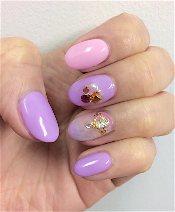 ジェルネイルの付け替えに行ってきました!今回は薬指だけタイダイで、他はシンプルワンカラー!中指だけストーンたっぷり。シンプルに仕上がるかなと思ったけど、アラビアンナイトみたいなエスニックな感じになったよ。長さは、いつものミディアム。指の腹側から1mmくらい見えるのがベスト!付け替えの頃には1~2mm伸びていますが、それでもうっとおしくない長さ。これ以上長いと、浮きやすくなっちゃうんですよね。春っぽくて気に入っています。毎回毎回、このネイル最高!!!ってテンション上がって帰っています。5秒に1回くらい爪を見てニヤニヤ(´▽`)