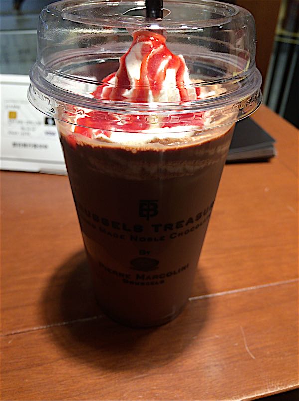 この前の横浜旅行の帰りに…大好きなピエールマルコリーニに寄って、横浜店限定フレーバーの「コールド ストロベリー ショコランブル」をテイクアウトしました☆テイクアウトっていうか店内でそのまま飲んだ。写真が暗いデスネ。ピエールマルコリーニのドリンクが大好き!仕事でどこか出張に行く時は、東京駅で必ず飲んでから出発します!元気モリモリになって良い気分になれます。あぁ…仕事ヤダ…帰りたい…旅行ならいいのに…荷物重い…↓ドリンク飲む↓美味しーーー!!!帰りも飲む!早く仕事終わらそー!!くらいのテンション差です。羽田にもショップがあります。飛行機を使った出張の時には、ドリンクだけではチャージしきれないテンションなのでチョコレートも買います♪機内で食べる!これで帰りたいモードから脱却できます(^^)美味しい物は、いつもやる気を出させてくれますねー!(ただのくいしんぼ)