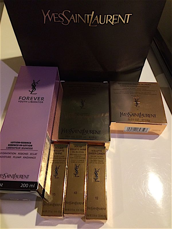 今日は初めてイヴ・サンローランのコスメカウンターへ行ってきました!ラディアントタッチは使った事あるけどね。楽天で買ったやつ(笑)ちゃんとカウンターでカウンセリングを受けるのは初めてです。クッションファンデ第4弾のために、目当てのクッションファンデだけ買って帰ろうと思っていたら…カウンターが凄い混んでいまして、席が無い!!BAさんが空いてない!整理券を貰ってしばらく待ちました。立ったままでいいから色だけ合わせて貰っていたんですけど、ちょうど席が空いて、担当してくれたBAさんが丁寧で可愛くて初々しいお姉さんだったから色々買っちゃった(´▽`)じゃん黒のショッパーはカッコいいですねぇ。大中小があるんだね。これは中だけど、持っていた買い物袋を大のショッパーに全部まとめてくれたよ。パッケージを見て一目惚れしたと言っても良い、クッションファンデ!黒と金が最高にカッコいい!クッションファンデの使用感は、1週間ほど試したら別記事で書きますねー!化粧水は、18000円以上でブラシポーチプレゼントだったので、調整のために買いました(笑)ポーチ可愛かったんだもん。手で試したけど、香りも良くて好きなタイプ。イヴ・サンローラン アンクル ド ポー ルクッション(B20) 7500円イヴ・サンローラン フォーエバー リブレイター エッセンス ローション 200ml 8000円イヴ・サンローラン ラディアント ユニヴェルセル パウダー 6000円(限定品)お直し用のパウダーが欲しくて、3色くらい塗って貰ってこちらに決めました。細かな質感のパウダーがサッと肌に溶け込むように馴染みます。真っ白白になったりしません。夕方の疲れた肌に乗せたら、光を当てたみたいに肌が元気に見えましたよ。パッケージも美しい!しかも軽い!なんと後で調べたら限定品でした(笑)それから…口紅部門No1を何度も取っている有名な!あれ!ルージュヴォリュプテ!ついに私も使う時が来たか!ってワクワク感が凄かったです。普段は唇が荒れやすいので、ほとんど色つきリップしか使いません。ちゃんとメイクしたい時はシャネルのルージュココシャインかグロスオンリー。あとはトムフォードくらいしか使ってません。似合いそうな色を見立てて貰って、塗って貰ったら…イヴ・サンローラン ルージュ ヴォリュプテ シャイン(15番コライユインテュイティブ)4100円イヴ・サンローラン ルージュ ヴォリュプテ シャイン(43番ローズリヴゴーシュ)4100円イヴ・サンローラン ヴォリュプテキャンディー(12番テイスティラズベリー)4100円あと5本くらい買いたくなるほど、本当に感動するくらい綺麗な発色と心地よい使用感でした!グロスみたいに唇に密着する感じが良いです。唇パックしてるみたいに潤うし。色はね、本当にどれもこれも綺麗で可愛いんですよ。3色塗って貰って、全部買っちゃった。全色塗って貰ってたら、全部買ってたかもよ(笑)ケースを見て色がわかるのも良いですよね。デザインも可愛いし、持っていてテンション上がります。パッケージが好みかどうか、って凄く大事ですよね!中身はどうあれパッケージが好みで買いました、っていうコスメも多いです(^^)きれいです。こんなにウキウキする口紅初めて。もっと欲しいけど、口紅は劣化しやすいのでちゃんと使ってから買います。シャネルで散々ダメにしたしね(反省)100本くらいあったしね在庫(反省)ちょうど今日(6月24日)からキャンペーンをやっていたそうで、ポーチやサンプルを沢山貰いました。ふらっと寄って良かったなー!18000円以上購入でプレゼントのブラシポーチです。赤のケースが本当に可愛くて!実はカウンセリング中に後ろに積んであったポーチが気になって、あれは売りものですか?って聞いたくらい(笑)わざわざ化粧水を買い足して、ポーチを貰いました。ブラシは3本セットされています。フェイスブラシとファンデーションブラシとアイシャドウブラシです!ポーチの蓋の裏にはミラーが付いています。こちらはベースメイクを含む12000円以上購入でプレゼントのポーチとミニチュアセット。12000円以上のポーチか、18000円以上のポーチどちらが良いですかと聞かれ…どちらも欲しいので買い足した次第です。30000円以上買えば、両方貰えます!ミニチュアの中身はこちらの3点です。フォーエバー ライトクリエイター CCクリーム (ROSE)トップ シークレット モイスチャーエクラヴォリュプテ ティントインオイルあ~~~楽しかった!素敵な担当さんに出会えたし!(ちゃっかり担当になってもらった)2回目来店で、ミラーのプレゼントがあるそうです。あれ、会員カード置いてきちゃったから、ミラーの写真はあとで追加します。ゴールドのスリムなデザインで、可愛いんですよ。-----------------↓追加しました!!3か月以内にカウンターへ再訪すると、プレゼントだそうです。-----------------そうそう、オンラインブティックでは口紅にエングレイビング(名入れ)サービスをやっているそうです。ちょっと興味あるから買ってみようかな。☆HIYOKO☆とか入れ