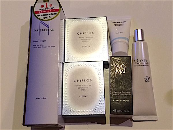 @コスメストアでちょこちょこ買ってたものを少しご紹介(´▽`)シェルクルール ベーシッククリーム 3000円コスメストアに行くと、必ずシェルクのクリームをオススメされる。もうリピートしまくって10本目くらいです。顔ではなくてボディに使っています。背中とか足とかで、肌をなめらかにしたい時…ニキビ予防に…この時期、汗のかき過ぎで肌が荒れることがあるんですよ。汗をかかな過ぎも良くないけど、私はかき過ぎでダメ!これを背中にバーーっと塗って洗い流すだけでしっとりで清潔でツルンツルンになれます(´▽`)使わないと、あせもみたいになるんですよね。ちなみに、クレンジングオイルとかクレンジングジェルも試してみたけど、悪化した(笑)このクリームだけは背中を綺麗に保ってくれます!それと、、、アルビオン ホワイトシフォン ルミナス 5000円セットしてみた。今年2月発売の新製品です。赤・緑・青・黄のパウダーから放たれる光が白色光のヴェールを作るそうですよ!(+_+)コンパクトがコロンと小さくて軽いので、持ち歩き用にしています。それから、持ち歩き用の日焼け止めを忘れて急きょ買ったのはオレゾ フェイスプロテクトUV 2200円これもオススメされて買ったのですが、とにかく伸びが良い!するする~っと伸びるし柔らかいので、肌に負担が少なくて良い!SPF50+、PA++++です。化粧下地に使っています。シャネルの日焼け止めと使い分けをしています。こちらは普段用。シャネルは本当にしっかり効いてくれて焼けないのでレジャーや乗馬用です!もう何が何でも焼けたくないやいって時は、併用もするよ(´▽`)お蔭で、炎天下で乗馬しても日焼け知らずですよ~~~~ミニサイズのAQMWとかアルビオンはオマケで貰いました。あ~~アルビオン買ったの久しぶりだな。あちこちカウンターめぐりするのも楽しいけど、コスメストアで美容部員さんからオススメ聞くのも大好き。知らなかった商品に出会えるし、シェルクはここで初めて知ったからね(笑)
