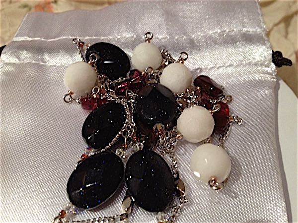 ブルーサンドストーンのネックレスを買いました☆デパートで見つけて、一目惚れ!ブルーサンドストーンと、あとなんかの天然石がぎっしり。(なんかって)私は首回りの金属アレルギーがひどいので、素材はプラチナかゴールドじゃないと真っ赤になってかぶれてしまうのですが…これはロジウムコーティングのなんかの素材で、確実にダメなやつなのに、ちょうど肌に当たる部分が天然石なので大丈夫でした♪(またなんかって)なんでこんなに記憶が曖昧なのかというと、買ったのがかな~り前だからです!保証書もしまいこんじゃったし、ブルーサンドストーン以外の石って何だっけな~。2重にしても着けられるので、かなり重宝していますよ。シンプルな無地のワンピースによく合わせています。ジャケットにも合うし、仕事でも出番多し!今度トルソーにちゃんと着けて全体図の写真を撮ろう(笑)