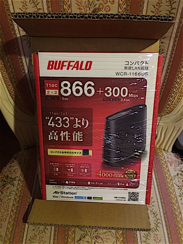 新しい無線LANルータを買いました!古すぎて遅すぎて切断しすぎて不便極まりなかったのでね。ルータって今安いんですね~。余っていた期間限定ポイントで買えちゃいましたよ。家ではPCはもちろん、iPhoneもiPadもアレコレWi-Fiにつなぐので無線LANが調子悪くなったら死活問題!!!新しいルータを買うと、各機器の設定が大変ですね。プレステやDSなんかも忘れずに設定しておかないといけないからね(´▽`)ネットなし生活なんて考えられないひよこです~~~WCR-1166DS【税込】 バッファロー 11ac対応 866+300Mbps 無線LANルータ(親機単体) [WCR1166DS]【返品種別A】【RCP】