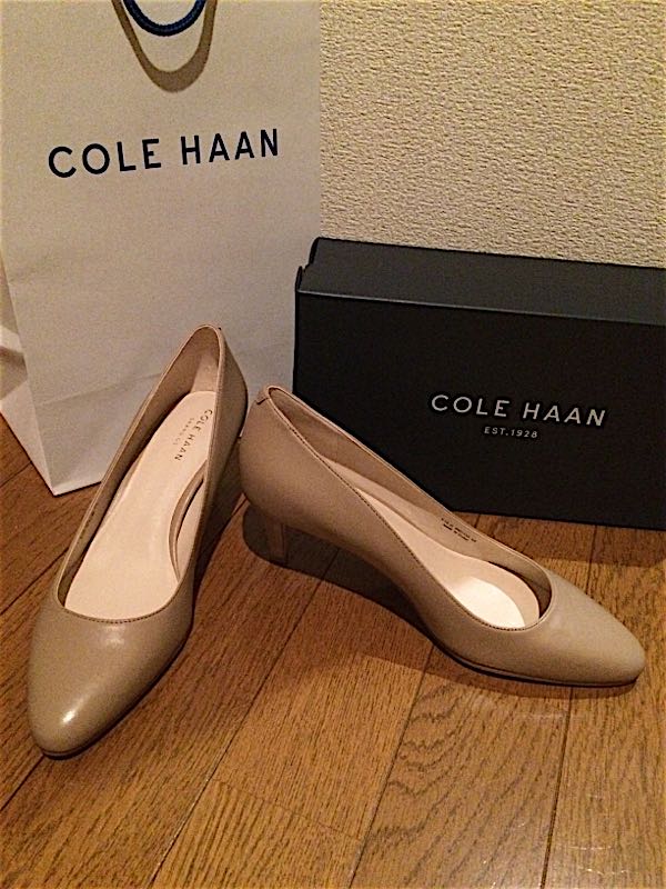 コールハーンでベーシックなベージュのパンプスを買いました!黒や茶色はいっぱい持ってるけど、ベージュのパンプスは初めて。今年は淡い色のスーツを着たいから、パンプスも何足か新調したいな。いくつか試着して、一番ヒールの高さも形もしっくりきたのがこれです。サイズは6Bです。COLE HAAN ケルシー パンプ 65 ウォータープルーフ ¥37,800なんと!これ、レインパンプスなんですよ。コールハーンのウォータープルーフシリーズは見た目が普通のパンプスそのものなのでいかにも雨仕様のビニールっぽい素材とは全然違います。晴れの日に普通に履いても全く違和感がないんです。突然雨が降ってきて、あ~~~靴が~~~ってことになると悲しいですよね。これから梅雨の時期は、例え雨予報が出ていなくてもいつ降るかわからないのでウォータープルーフのパンプスを履いていれば安心です(´▽`)色や形は様々なので、ベーシックなヒール以外にウェッジソールもあります。パテントもあります。迷ったけどパテントの靴ばかりなので私はレザーにしました。フラットも可愛いな。もちろんフラットでも雨仕様なので下から染みてきたりしません。水たまりも大丈夫!昨年買ったレインバッグもあるし、レインコートもあるし、梅雨の準備は完了です!これでいつ梅雨入りしても大丈夫!なのにまだ雨が降らない(´□`)