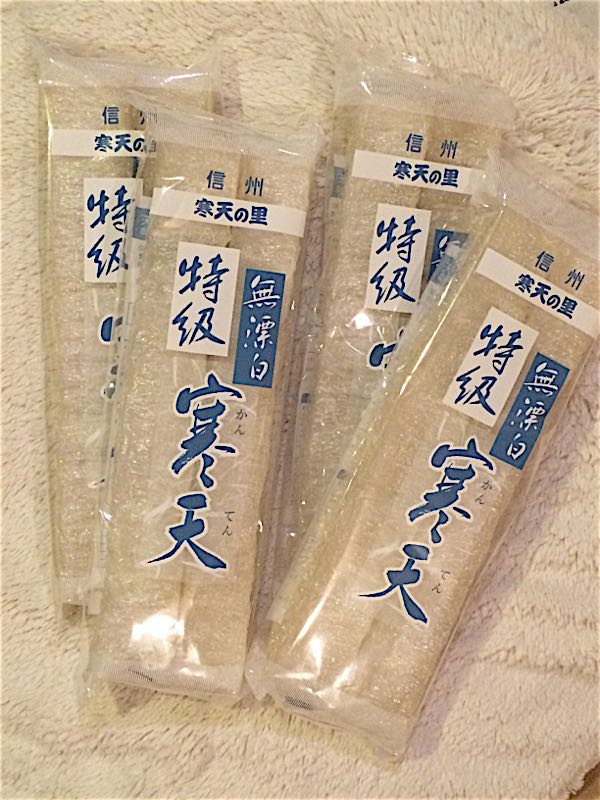 手作りデザートにハマって、プリンやゼリーなどを作る日々でしたが…最近は寒天デザートに凝っています(´▽`)使っているのは角寒天(棒寒天)です。食物繊維が豊富で美容にも良いですよ!寒天は普通にスーパーに売っています。いつもたくさん買うのでネットで箱買いでもしようかな。作り方は簡単です。水で柔らかくなるまで戻して、煮て溶かして固めるだけです。ちゃんと溶かさないと舌触りが変になるので、根気よく混ぜます。左がノーマル寒天。右がフルーツ入りの甘い寒天。黒蜜をかけて食べるのが好きです。豆とアイスときなこをトッピングして、クリーム蜜豆に♪見えてないけど下の方に大きな煮豆がたっぷり。母の手作りです。とーっても時間がかかるそうで、私にはできない(´△`)甘みをつけたい時は、きび糖かてんさい糖を使っています。優しい甘さ。大好きな水ようかんも作りました!こしあんを混ぜるだけです。甘さはお好みで。うちは甘さ控えめが好きです。固め中。冷蔵庫で冷やすと美味しいです。光が反射しちゃって白くキラキラしてるけど何も入っていません(笑)水ようかんが大好きなので、毎日食べています。簡単で美味しいのでオススメですよ!