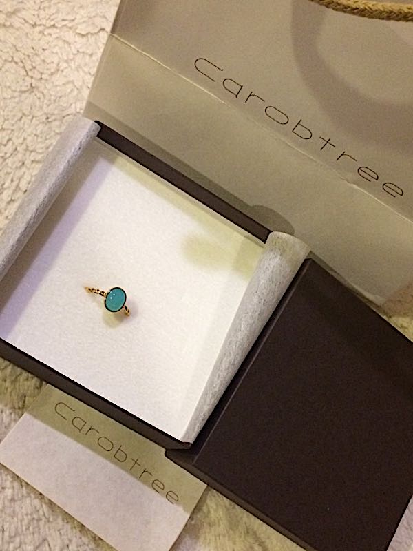 誕生日プレゼントに天然石のオーダーメイドリングを貰いました♪シーブルーカルセドニーのリングです♪石と土台の形を選べて、好きな素材でオーダーできました。素材はプラチナ台と迷ったけど、緑とゴールドの組み合わせが好きなのでこれに(´▽`)プルンとしたカボションが可愛いです。今週末はホテルディナーが待っているので、これつけて行こう~。