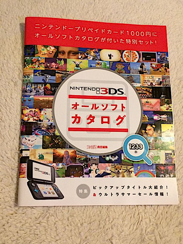 コンビニで、面白い物を発見しました!任天堂3DS オールソフトカタログ 1000円 なんと、1000円分のプリペイドカードがついているんです。なので、カタログが実質無料!カタログといっても、ペラペラの薄いペーパーではなく、しっかりした冊子で176ページもあるので読み応え抜群なんです。発売順にずらっと並ぶソフトを見るのは楽しいですよ。しかも、現在開催中のウルトラサマーセール対象のソフトにマークがあるので、買い物もしやすいです。早速、1000円分のプリペイドをチャージして、ゲームをダウンロードしてみました。王国の道具屋さん800円→400円RPGの世界で道具屋さんを経営するゲームです。 アトリエ系みたいな感じで、クエストに行って素材を集めて、アイテム生成して売る売る売る!街の人の注文に応えたり、お店を改装したり、とにかくお金を稼いでお店を大きくするゲームです(笑)こういう系のゲームが大好きなので、2日間廃人のようにやってました。クリアしちゃいました。あ~面白かった。ダウンロード版はあまりチェックしたことがないので、面白いソフトが見つかって良かった。次は何をやるか、カタログ見ながら考えるのが楽しい(´▽`)本屋さんやネットショップでは見かけないので、コンビニにしか置いてないのかな?と調べたら結構取扱い店がありました。-------------------セブン-イレブン、ローソン、イトーヨーカドー、エディオン、ゲオ、上新電機(joshin)3Bee、ソフマップ、TSUTAYA、ビックカメラ、フタバ図書、ブック・スクウェア、古本市場、ヤマダ電機、ヨドバシカメラ、Wonder GOO-------------------そっか。プリペイドカードがついてるからだね。私はセブンイレブンで見つけましたが、いつもの感じで他の買い物と一緒にカードを出したらプリペイド商品は現金のみと言われて焦った(*_*)予備のお札を持ち歩いていて良かった~。キャッシュレス生活の人はご注意!楽しい夏休みを~~(´▽`)