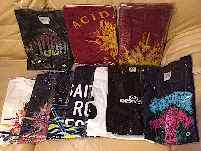 2017年11月23日に開催されたACIDMAN主催フェス「SAITAMA ROCK FESTIVAL SAI」で購入したグッズをアップ!(今さら…)直後に書こうと思ってたけど(´▽`)ずっと保管してて7月の武道館ライブでようやく開封したんですよ(笑)SAIは本当に素晴らしかったよ…出演アーティストが、こんなに豪華なんですもん。-------10-FEET・MAN WITH A MISSION・THE BACK HORN・ASIAN KUNG-FU GENERATION・the HIATUS・BRAHMAN・RADWIMPS・Dragon Ash・STRAIGHTENER・ACIDMAN(セトリ順)-------二度とないだろうなっていうメンツでしょ。あの頃から今でもずっと大好きなアーティストばかりですよ。で、興奮してこんなにTシャツを買ってしまいました。他にもハットとかタオルとかスマホケースとかあったけど、使用中なので写真にはない。(ダメダメだ)7月13日の武道館ライブでは、着いたのが遅くてタオルしか買えませんでした!音楽のライブに行く回数は減っちゃったけど、ACIDMANだけは必ず行きます。