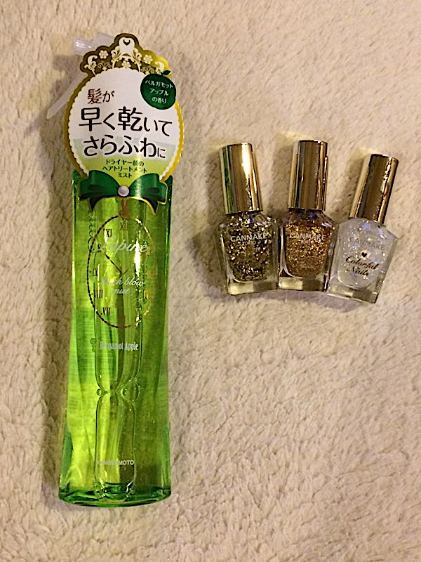 暑いですね~~~暑いのが苦手な私は息も絶え絶え。なるべく外に出ないで済むように、工夫して生きています…。仕事の時は駅の地下構内を通って地上に出ないように…休みの時は外出は夜のみにして…早く秋よこいーー(T_T)気晴らしにLOFTをうろうろ。買い物する場所も、家か駅から直結で行けるところにしか行っていない…ドライヤーが暑いので、速乾系のスプレーを買ってみました。フローラル系だと重いので、爽やかなアップルの香りに。10回ほどスプレーして乾かしてみましたが、汗がだらだらで速乾性がよくわからない(笑)けど、いつもよりツヤが出て指通りが良くなります♪それからキャンメイクをチラ見。8月1日発売の限定ネイルが7色もありました!3つも買っちゃった。キャンメイク カラフルネイルズ 360円 全て限定色N21(ゴールドフレーク)N22(スパークリングゴールド) N24(トゥインクルドロップ) キラッキラのホロがギッシリの21番が凄く良い!ワンカラーに重ねるだけで、ちょっと凝ったネイルになっちゃう。22番はラメグラが簡単だし、これは優秀!24番はまだ使ってません(´▽`)秋服いっぱい買ってスタンバイしているので、早く涼しくな~れ~。