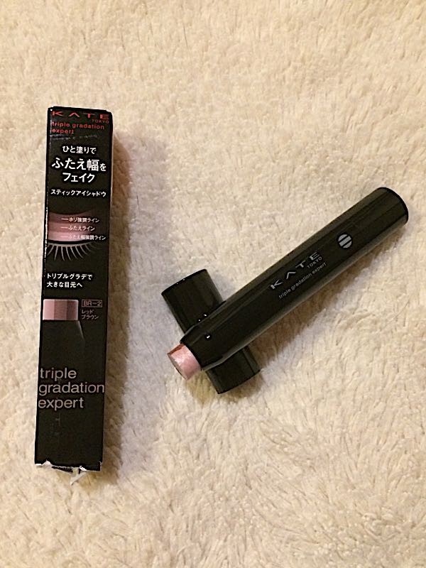 GW中だけど、どこにも出かけずのんびりしています(´▽`)ゲームしたり本読んだり映画観たり…あぁ幸せ。新発売のKATEのアイシャドウスティックが気になったので、近所のドラッグストアに行ってきました。食材を買いに行く以外で久々に外出たわ。少し暑かったので、UV対策だけしてGO。顔はUVクッション、体はUVスプレーで時短で良いですね。2色展開で、どちらもKATEお得意の絶妙なブラウン系。赤みのあるBR-2にしました。KATE トリプルグラデエキスパート BR-2 1500円説明書通りに、まぶたにスーッと塗ってみましたが、結構硬い質感!ぐぐぐ…っと動く感じです。目にぐりぐりやっても気にならない方は、本当に綺麗なグラデーションになりますが、そ~~っと優しくやると、色があまりつかない。なので、最初は手とかに少し出して柔らかくするのがオススメ。あと、折れたりしないので多目に繰り出して塗ると、使いやすいです。濃い色を上にして、まぶたのくぼみに濃い色を引っ掛けるようにして塗るのが気に入っています。塗り終わったら指でぼかすと、ダブルラインを引いたみたいなパッチリしたメイクに!ただ、結構時間がかかるので、普通にパウダーのアイシャドウでグラデーションを作るのと変わらない^^;旅行とか出張とかでアイテムを少なくしたい時に便利かな。