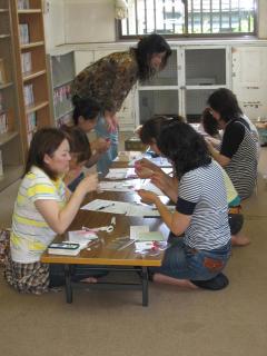 6月12日(火)、託児付きで「ハワイアンクラフト体験講座」を行いました!告知期間があまりなかったのですが7名のママと、その子ども達8名の参加となりました♪初対面のママ達でしたが、話に花も咲かせ、あっという間の2時間でした♪ハワイアンキルトとリボンレイをどちらか選択していただいたのですが、時間内に二つ制作した方も何名かいらっしゃいましたね!託児初体験のお子さんもいましたが、みんないい子ちゃんでしたよ!(保育スタッフ談)みなさん、「楽しかったー!」と言っていただいたのが嬉しかったです!日頃、なかなか出来ない針を使ってモノをつくることで、ストレス解消になったらいいですね♪