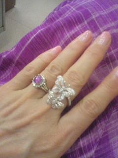 8月も終わりかけてますね。 歌舞伎で息抜きしたのだけど・・・ やっぱり「おもしろいこと」不足です。 なんと申しましょうか・・ 純然たる「私のためのおもしろいこと」がない感じ。 人生なんてこんなものなんでしょうかね。 そうそう、不法占拠の小鳥一家が立ち退いてくれたので・・ 夫が木を切りました。 1階の屋根を過ぎてましたから・・結構な作業・・。 まあ、頑張りました!これは Good job! で、もちろん切った木も始末しなきゃね。 ざくざくに切った生木を・・私の庭の炉の上に積み上げて・・(桜の下) 細かくきる、なんて作業はしないで・・いきなり焚き火・・。 ええ、もちろん、こんなことで燃えるはずがありませんよねえ~~~。 で、彼が何をしたか???? 上から灯油をかけて・・・強制的に! ええ・・・かけた一瞬燃え上がりますよね~~。でもそんなことで生木は燃えません。 一瞬燃え上がった炎は・・桜の枝先をなめて・・・茶色に変色・・・。 私がちょっとしたお出かけ中にそんな作業が行われ・・。 しかも燃えなかった生木の山はかわいくなく私の!庭に放置され・・。 今、庭がかわいくないのが、一番いやなことかも・・。 わがままな性格なので・・人の後始末は嫌いです! でも庭がかわいくないのは・・もっと嫌い!(しかも人のせい!!! あ~~あ、なんとかしなくちゃね。 人生って大変!! つまんないので、新しいネイルを買って、グラデーションに仕上げてみました。 スタールビーの指輪にぴったりかも~~。 つけてお出かけしたい~~~。 でもこんなことで、ちょっと楽しくなってしまう・・ 女とすし屋はヒカリモノが先・・でしょうかね。