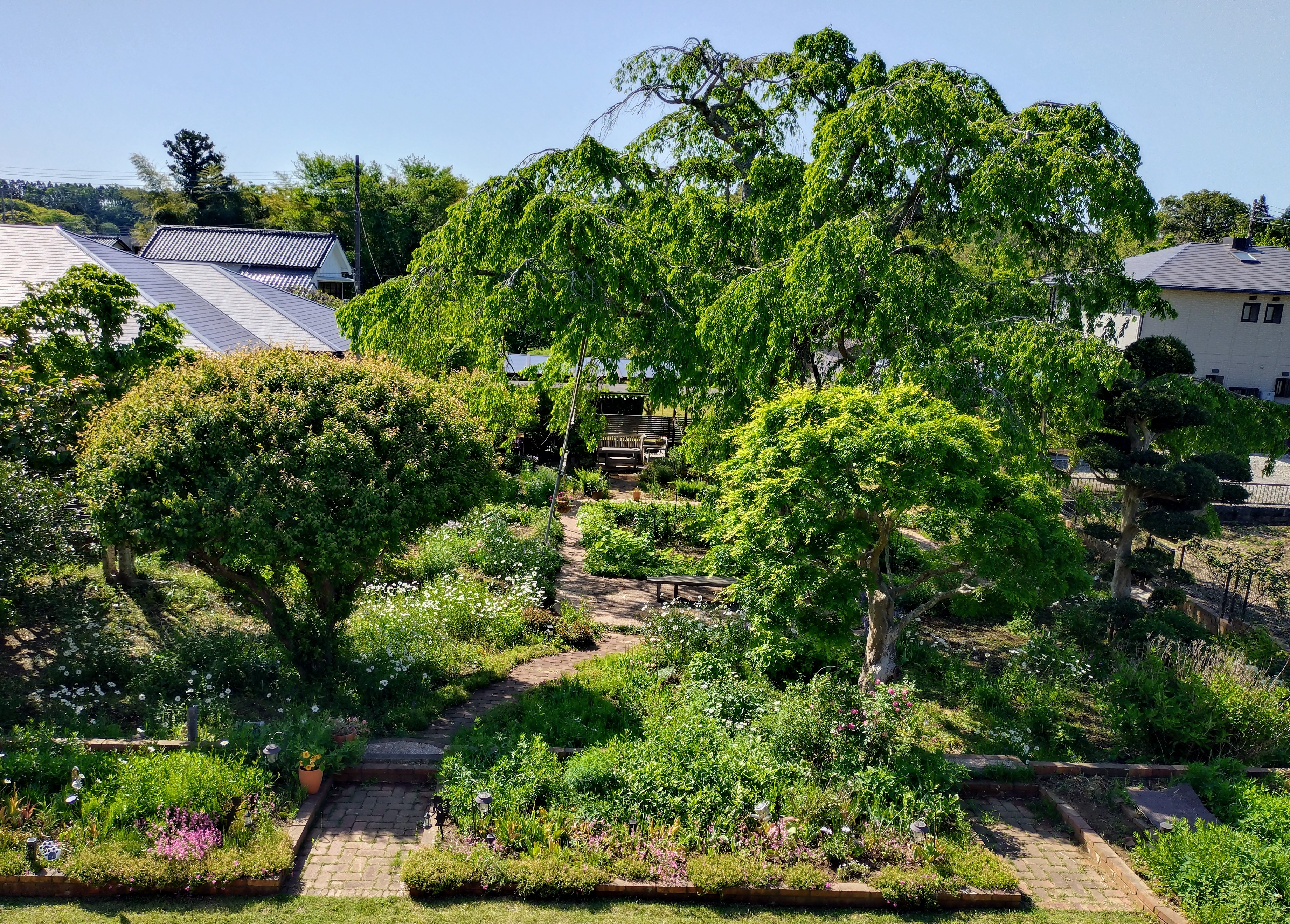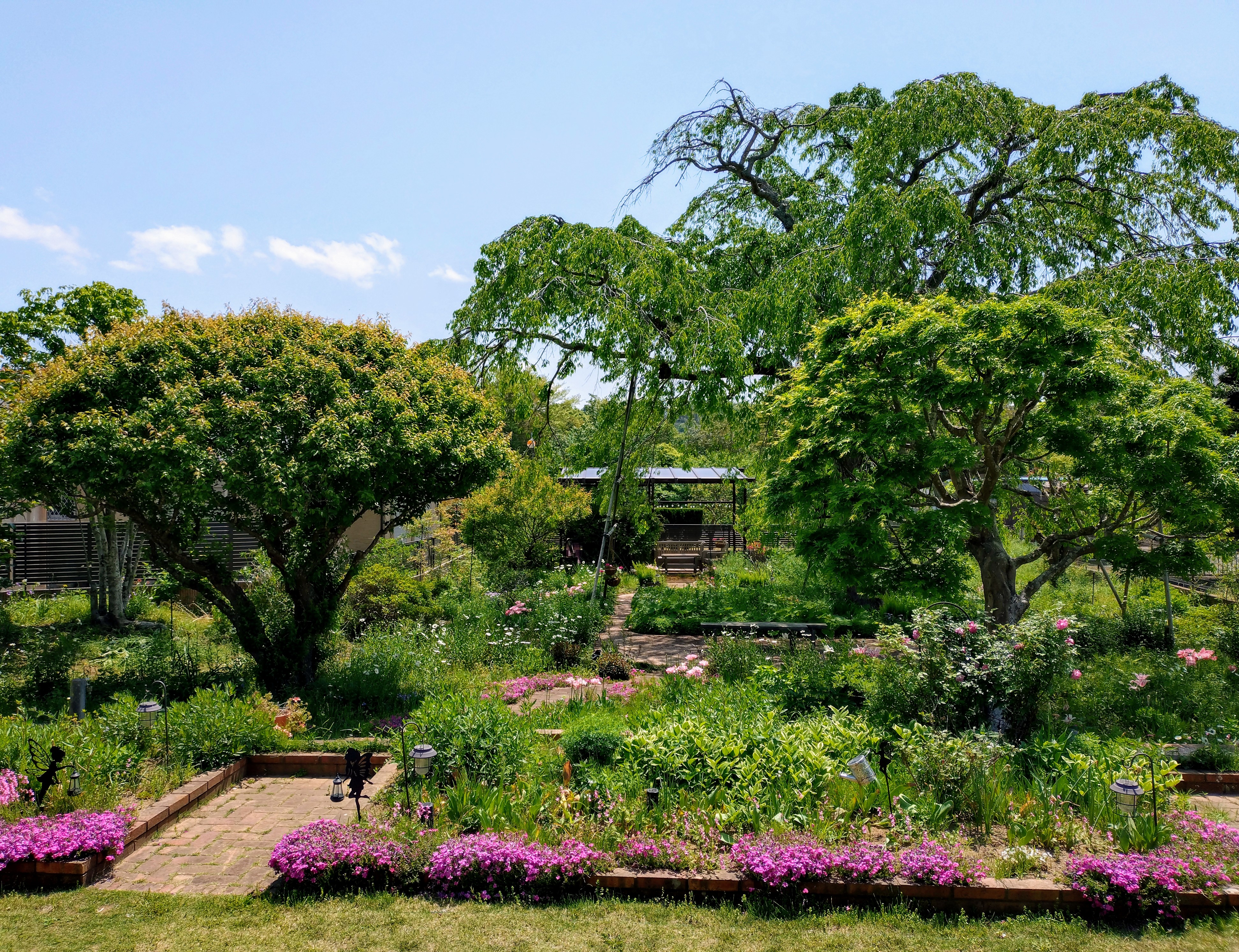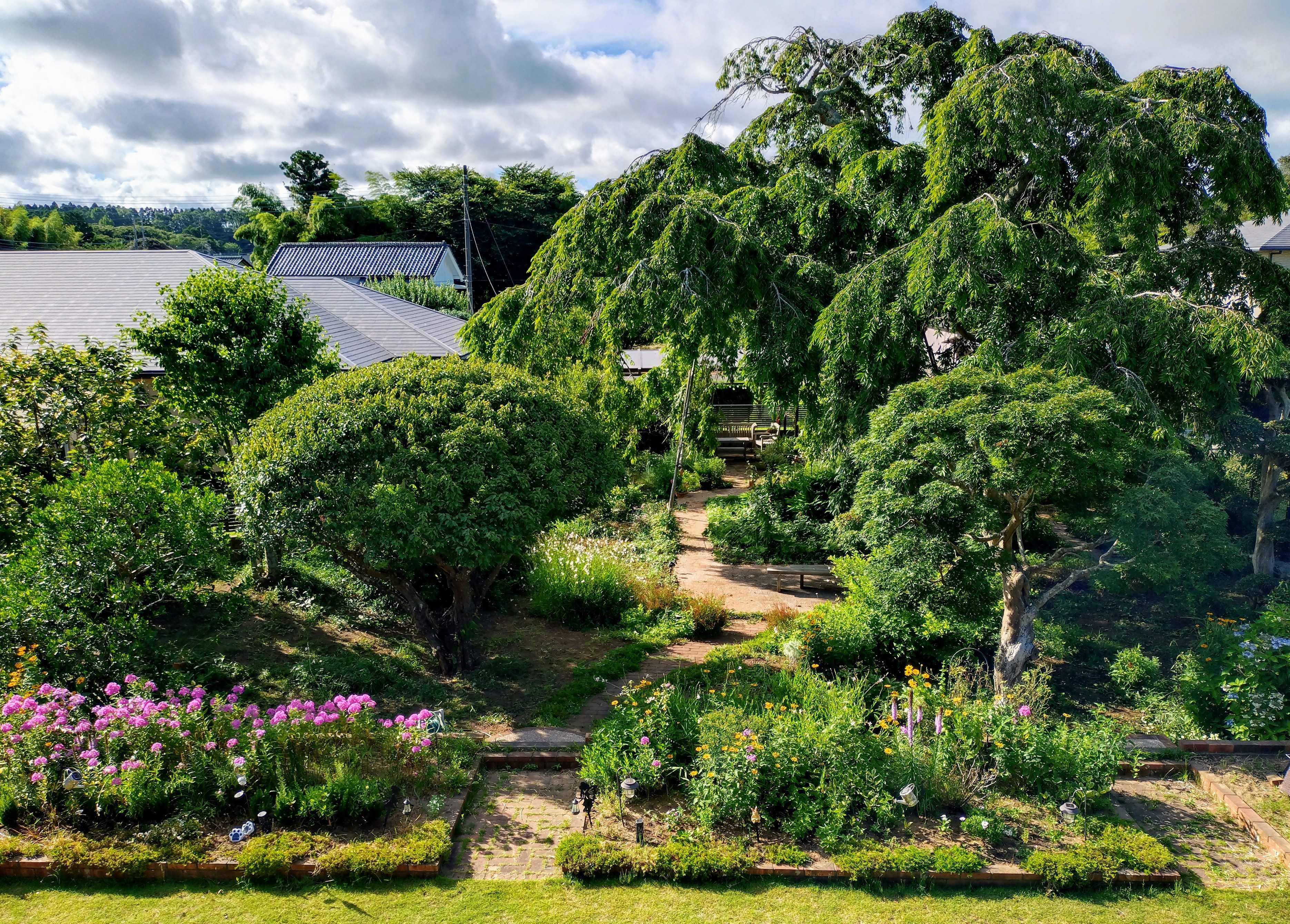モリモリの庭になりました。梅も終了してブルーシート片付けました。フロックスが咲き進んで近くに行くと こんな感じ。手前にはホーリーバシルやらサルビアあるのですがこのお天気で育ちが悪い😡冬越しした桃色ハート盛り上がって来ました。ノリウツギは満開🎉芝庭は自動芝刈り機のお手柄。本当に偉い。一度も芝刈りせずこんな感じ。去年から育成中のルリマツリ。右青いお花隣がサルビア コーラルピンクその隣がホーリーバシル鉢ルリマツリ今年はモリモリして来ました。地植えのは枯れて挿し木してサンルームで冬越しした子ですが。この夏 どこまで育ってくれるかしら🥳嬉しさ 山盛り🥳🎉種蒔きしたサルビア コーラルピンクこれは別鉢。沢山発芽したので地植えにしたり 鉢にしたり😡鉢に下ろした物のほうが育成が良い。不思議。でも いずれにせよ可憐で可愛く 丈夫な良い子😘ブルーベリーに何と カラス来襲 目撃したので ソーラーの音波発生機 セット。 左下 青いやつ。効いてくれると良いなあ。 ノラ猫対策もあって四ヶ所 セット。階段 周り草取りして 可愛く園路周りも。年度超えの梅干しもこれで終了。本気で梅雨明けしたら今年分 干さなきゃね🥳ベストショットはフロックス舐めの桜庭。幸せ🎉🎉