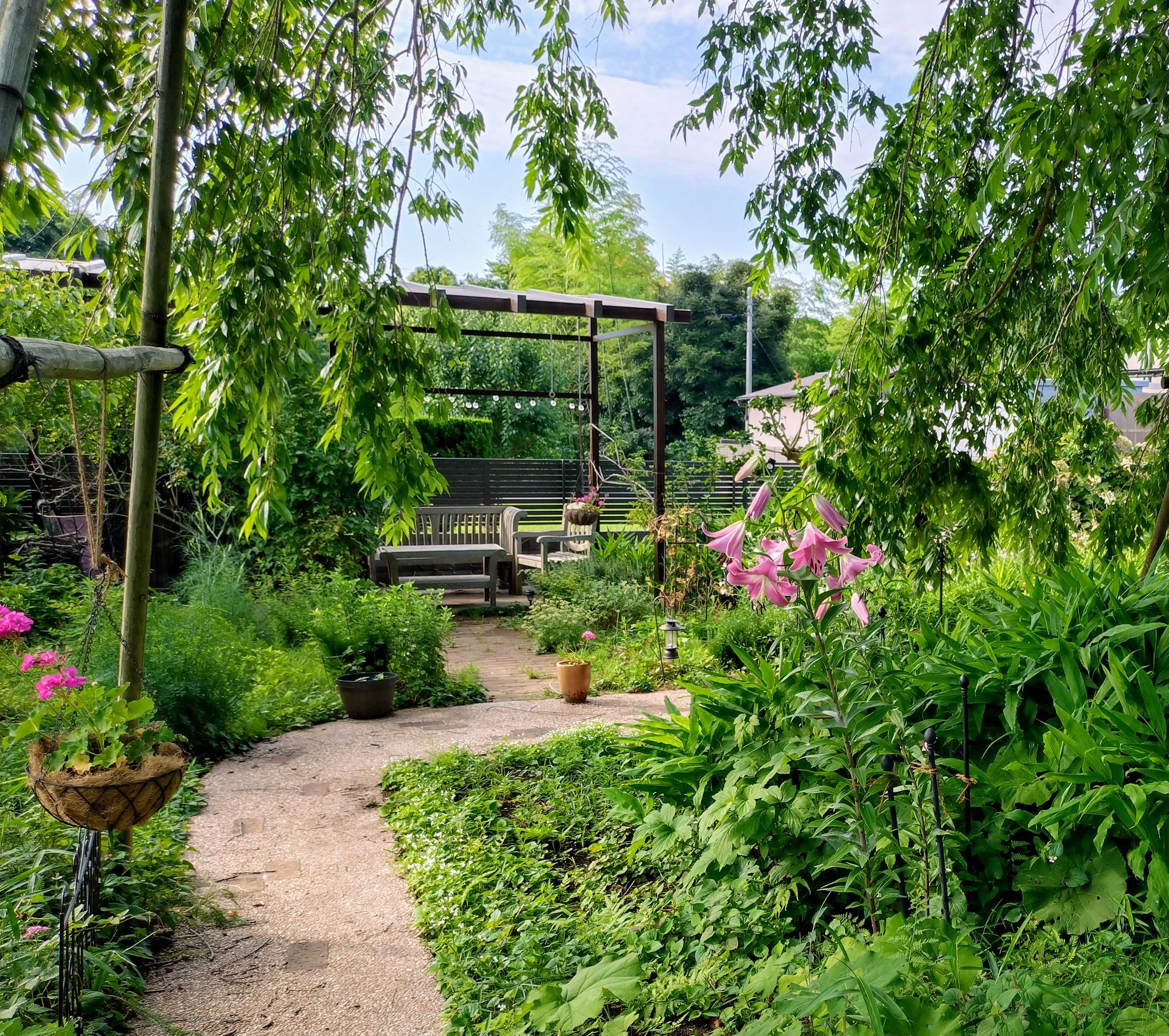 初盆が終わったらすぐ 1周忌でした。 姉と甥 息子達家族 我が家3人 母は卒塔婆のみ参加御経は自宅で上げて貰いお墓参りしてオークラの桃花林に移動して会食。大人たちはコースで お子達はアラカルトで欲しいものを。始まりは11時で すべて終了して3時。 姉と甥は日帰り予定。 オークラから東京行きのバスもあるけど 1時間に1本 次は3時32分。待って乗る も ありだけど ここの30分がすごく嫌な感じ。アクアライン渋滞にかかると大変👿 最もアクアライン近くバスの本数多い 金田バスターミナルまで送ります。すんなり行けて 5時の新幹線乗れたそうな。 日曜の道路攻略は決断が大事。遠い人が無事帰宅出来て イベントは終了と言えましょう🥰 来年 三回忌だけどもう少しゆとりある企画にしたいなぁ😅夏の間 まぁまぁ 庭がいい感じに茂って。元気者ガウラを刈り込むのが大事。すぐこんな感じに園路に出て来るので。ぎゅっ と ね。一番奥の花壇は鉢物入れてバランスとって芝庭脇のボーダー。花壇として作り込んで無いので鉢物やらハンギングやら立体的に。やっぱり 庭が好き。