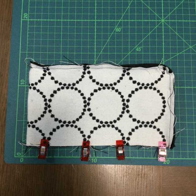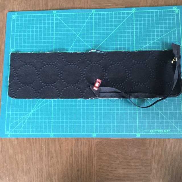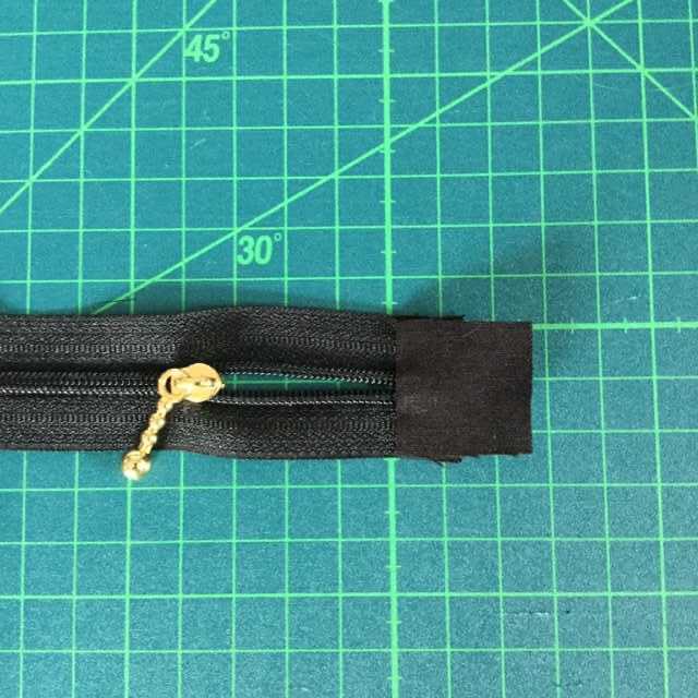 ファスナー幅にカットしたシーチング生地ブラックを、3cmを2枚