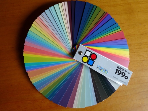 青は青でもいろんな青があるなあ。。。 明るい青、暗い青、緑がかった青、紫がかった青、くすんだ青、澄んだ青。。。めくっていくのが楽しい。閉じるとこんなにコンパクトに。広げてみて眺めたり、パラパラめくってみたり、時折、楽しんでいる配色カードです。 娘が中学生の時に美術の時間で使っていたものを譲ってもらいました。大きさはこれくらい。英単語帳より少し巾があります。 199色のカードです。 一番上の画像では全色が見えていないので、ゆるきゃらバリィさんにちょっと持ち上げてもらいました。色のトーン別の順番にカードが綴じられていて、構成は以下のようになっています。 ●vivid tone:24色相●deep 、 dark 、 pale 、 light 、 bright 、 soft 、 dull 、 light grayish 、 grayish 、 dark grayishの10トーン:各12色相●Neutral(無彩色):17段階●Pink:10色●Brown:7色●off Neutral:15色●Flesh(肌色):6色 ******** アクタスの123人の家の表紙カバーの色はこの色に近いかなあ。 先日、購入したクッションカバーの色は、このくらいの色かな。。。真剣に比べてみたりして。。。 そんなふうにしていると普段の生活でも、洋服の色とか雑貨の色に微妙なトーンの違いがだんだん見えてくるようになりました。 ********* 色を楽しんでいるうちに、ブログの文章で、何かの色について書く時、その微妙な色を表現するためにひとつひとつの色の名前を知りたくなりました。 次回はそのために購入した本について記事にしますね。日本色研 新配色カード199a 最後まで読んでくださってありがとうございます。「おもしろかったよ~」「その情報ちょっといいかも~」と思っていただけましたら、下のバナーのどれかをクリックしていただけたら嬉しいです! ↓ ↓ ↓にほんブログ村暮らしを楽しむブログランキング心地よい暮らしブログランキング北欧インテリアブログランキング