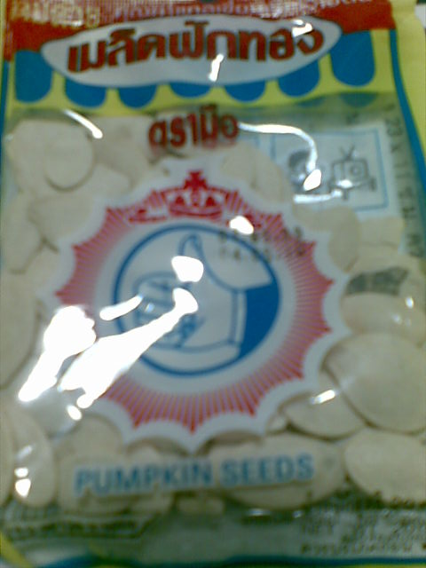 英語ではPUMPKIN SEEDS、日本語ではみたまんま!わかりませーん かぼちゃの種ですおつまみで友達と食べました。皮をむくと なにやらニョッキと 友達はこんなけったいなもん食べられるかと、リスや鳥と…いましたが、食べてみると私達以上に食べるとるし、さっきまで顔がにそして 思い込みや、見せ掛けで判断したらいかん!と思いつつ友達は夜日本に帰りました。でお土産で持って帰りました