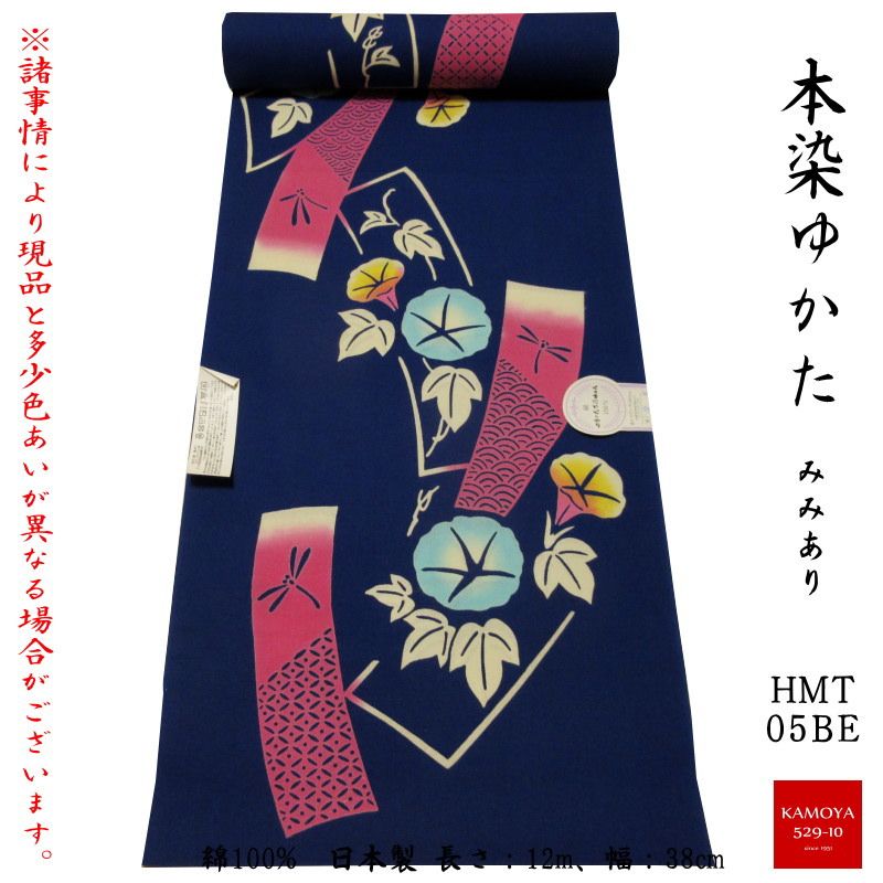注染とは、日本独特の染色技法です。表と裏が全く同じように染色されるのが特徴です。両端に耳がある高級浴衣地です。