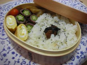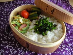 今日のおべんと○ごはん+ピーマンこんぶ○ゴーヤチャンプルー○金時豆煮○キュウリのピリ辛浅漬けキュウリの浅漬けはケンタロウさんのレシピ本で見て以来我が家の定番になっています。しょう油・酒・ごま油・お酢・鷹の爪を小鍋で煮立ててキュウリにかけジップロックみたいな袋に入れて味をなじませます。できれば数時間冷蔵庫で漬けておきたいですが30~40分で何とか味が染みるので朝起きてすぐに作ればお弁当にも間に合います。キュウリが毎日冷蔵庫に入っているこの時期はしょっちゅう作るレシピです夏のレシピといえばだんなさんの大好きなゴーヤチャンプルーもそろそろ店じまいの時期です。うちのだんなさんはわっぱのお弁当箱に買い換える前プラスチックの2段式弁当箱を使っていましたが、下段→ごはんのみ上段→ゴーヤチャンプルーのみという恐ろしいお弁当を夏の間ほぼ毎日喜んで持って行っておりましたでも会社の人には見せられなかったらしい(笑)ピーマンと塩こんぶを和えたものは義母から教わりました。お義母さんはピーマンをゆがいてましたが生のままでもこんぶの塩気でしんなりするので私は生のまま和えてしまいます。(無精者…)これが意外なほどご飯に合うのです彩りがちょっと寂しい時にもピーマンの緑で彩り力UP今日は野菜多めのヘルシー(?)弁当になったかな