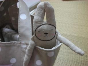 今日もお弁当作ったんですがまたしても茶色…だんなさんにも「…まぁ無いよりいいよ」みたいな顔をされヘコんで写真撮りませんでした(-_-;)明日はカラフル弁当頑張ります!さてさて昨日写真アップできなかった【くったりさん】出来上がったのでご紹介します~じゃじゃじゃ~ん…こうやって写すと今までのと変わんないですネしかしっ!!!今回は改良形ですお腹と手足にペレットが入っているのでこんな恰好もできます(笑)バックの端から顔を出すとこんな感じですうしろ姿若干哀愁が…耳から頭にかけては今まで通り綿を詰めてしっかり輪郭が出るようにしました。1体作るごとにもっとああしよう!こうしよう!と小さな改良を重ねてペレットを入れたりリネンのトリコロール柄のリボンをタグっぽく縫いこんでみたり楽しみながら作っております次は頭のてっぺんに細いヒモを輪にして縫い込んでストラップにできるようさらにマイナーチェンジしてみますちなみに…くったりさんと一緒にチョットだけ写っているかごバックは実家の近所に住むおばちゃんの手作りです雑貨屋さんで売ってても全く違和感の無い素晴らしいクオリティ!いつかこんなの作れるようになりたいです