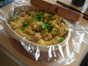 今日のおべんとなんか変!?変ですよね!!!今日のお弁当、実は親子丼なんですがだんなさんが「ご飯が(丼の汁で)ぐしゃっとなるのは嫌だ!」というので…ご飯と具材の間にラップをかませて食べる時にラップを引き抜く【コンビニ弁当風】の親子丼にしてみたという訳です超がつくほど不器用なだんなさんが柔らかいラップをスーッと引きぬけるかひどく心配ですがどんな具合だったか帰ったら聞いてみます