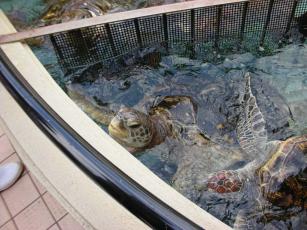 この3連休、近場やら遠くやらあちこち出掛けて来ました~その様子をちょっとずつアップします連休初日は近場の水族館に行って来ました~まずはアカウミガメとアオウミガメちょうどごはんタイム。餌の魚が入ったバケツを持ったお兄さんがやってくるとでっかいウミガメがわらわらと集まって来ました~ちょっと怖~いここは小さな頃から数えきれない位訪れているところ。ここ数年ご無沙汰してましたが大人になっても水族館ってやっぱり楽しいですネだんなさんのお気に入りキングペンギン暑がりなのでクーラーのお部屋にいます。アップを激写ッフンボルトペンギン泳いでいる姿は空を飛んでいるみたいに見えます2種類のペンギン、お食事タイムを見ることが出来ましたが…魚を口元まで運んでもらって食べるおっとりしたキングペンギンかたや我先に餌を奪い合うフンボルトペンギン同じペンギンでも全く違う生態!飼育員さんの解説を聞きつつ楽しく学習(?)しましたお食事タイムの後はフンボルトペンギンとの記念撮影タイム飼育員さんに連れられてお行儀よく並んで撮影ポイントまでやって来てくれますあっという間に撮影待ちの行列が…並ぶのが面倒になり記念撮影は諦めて次の展示へ今話題のゴマフアザラシ分かりにくいですがプールの端っこで立ったまま寝てますョ…頭に手ぬぐい置いたら温泉でまったりしてるおっちゃんですョ…あまりに隅っこにいたので気付かずに通り過ぎる人も多かったですが気付いた人は皆、爆笑してました長くなりすぎたので続きは【その2】で。