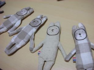 昨日も今日もだんなさんはお弁当なしの日しかも夕飯も要らないみたいなので今日はお料理しなくて済みそう!そんな時は【くったりさん】作りがはかどりますこないだ友人とその娘っ子に【くったりさん】をプレゼントしましたが家に帰ったら彼女のだんなさんと息子くんも「欲しいって言ってるよ~」とのこと。しかもだんなさんからは「ケータイにつけるから小さめのヤツを作ってくれ」と指令が…小さいの作るの大変なんだけどな~(笑)でも頑張りまっす小さくなると縫った生地を裏返すのがすごく難しいのですですがちまちまちくちくやってると…出来上がりました~ちびくったりさん完成どれ位ちびかと言うとくったりさんとの比較くったりさんは身長17cmくらいちびくったりさんは12cmくらい数字にしてもイマイチ分かりづらいですかね。ふたまわりくらい小さくなった印象です軽くなってストラップに丁度良い大きさと重さ。でも小さく作るとくったりしないんです…(-_-;)くったりさんなのに(笑)ラッピングするとこんな感じオークションにもこんな感じで出品したいと思いますこの土日で頑張って製作デス