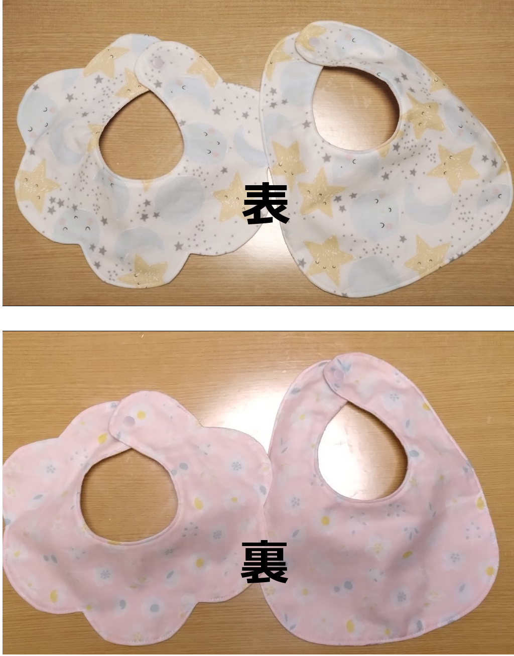 世の中は少子化と言われてますが、私が行ってるこども園の保育士さん、来年の初めにかけて出産予定の人が3人、4月に産休から復帰してきた人が1人。来年の4月に育休から復帰する人が2人。おまけに毎週配達に来てもらってる生協のお兄さん。今月中に新しい家族が誕生するんだって。それで甥っ子のスタイを作った型紙があったので、またスタイを作りました。これをね、4枚づつ作ったの~簡単なようだけど、カーブが多くて結構めんどくさい。面倒くさいけど、飽きないので(簡単なものは飽きる)ついつい4枚ずつ作ってしまいました。ストライプと猫柄の裏生地のものは、男の子ってわかってる人に。表生地はみんな同じ。こんなに作ってどうする?って思うけど、来年復帰する人は二人とも女の子、来年出産予定の人はまだ不明だけど、女の子でありますように・・・あ、生協のお兄さんとこは女の子だって。女の子率、高いなぁ~~今回は芯地を入れず、裏生地はダブルガーゼですが、表の月星柄はコットンフランネルなので、わりとしっかりしています。この方が縫いやすかったわ。スタイは食事の時だけですむ子もいますが、今年4月に復帰してきた保育士さんの子どもさんはヨダレが多くて、何枚あってもいいって。すでに2枚渡してるけど、またあげようかな。で、違う柄でまた縫おうかな・・・もくもく型の丸いカーブがなかなかうまく縫えなくて、まだ納得できない!【Moda モダ】D Is For Dream Flannels-25123-12f(2A-06) グレージュ 星 月 ファンシー キッズ かわいい コットン100% フランネル生地 110cm幅【10cm単位販売】【Moda モダ】D Is For Dream Flannels-25122-14F(2A-06) ライトブルー 動物柄 クマ ファンシー キッズ かわいい コットン100% フランネル生地 110cm幅【10cm単位販売】【Moda モダ】D Is For Dream Flannels-25128-14f(2A-06) スカイブルー ドット ファンシー キッズ かわいい コットン100% フランネル生地 110cm幅【10cm単位販売】可愛い 動物とシャボン玉 アニマル柄 ダブルガーゼ生地(オフホワイト) (ガーゼ 布 生地 キッズワンピ シーツカバー マスク スタイ ミトン ベビー おくるみ キッズ 手作り 手芸 ソーイング ファブリック ハンドメイド)