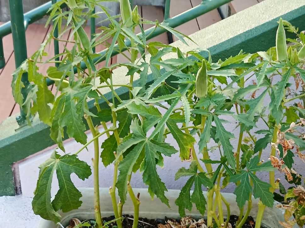 園のオクラ、死にかけてたけど復活してきて