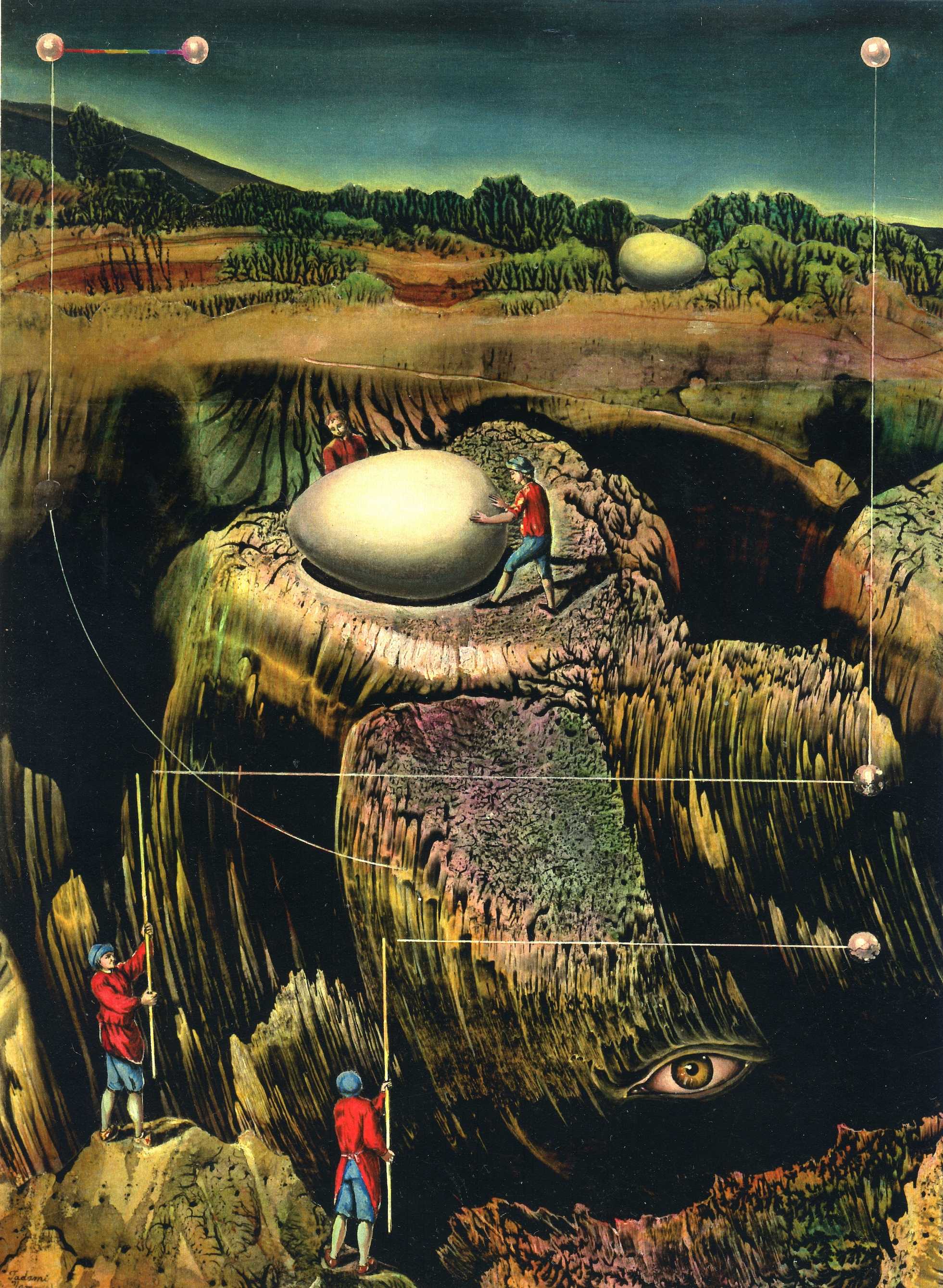 東京都心の気温が35℃を記録し、今年初めての猛暑日となった。我が市は都心からはずれ、しかも終日の曇り空、それでも正午から午後3時頃までは33.5℃。この暑さは早朝すでに午前3時過ぎには26℃を超えはじめていた。 ヨーロッパ、あるいはインドでは40℃を越したそうだから、冷房装置が極端に少ない同地では死人が出ているというニュースも、さもありなんと想像する。一方、中国では巨大な雹が降る嵐。 ・・・世界中の至る所で異常気象がつづく。しかしアメリカ合衆国の大統領は、地球上の二酸化炭素排出に関する観測データを長年にわたって研究をしてきた機関に対し、その研究をやめるように指示し、経済支援を廃止する通告をした。この大統領の考えは、アメリカ国内生産を振興してゆくためには二酸化炭素排出規制は邪魔だ、というわけである。・・・じつに不思議な考えをする人だ。政治家として「いま、この時」をしか考えないなら、政治家とはなんとつまらない人間だろう。アメリカ合衆国・アズ・ナンバーワンが、この地球人類にとって何ほどの意味があろうか? いまや人間は、我一人のことではなく、我が一国のことではなく、人間と生きとし生きるものが乗っている地球のことを考えなければならないはずだ。子供っぽい意見と言うなかれ。たしかに地球人類の命運の先は見えない。しかし、月や火星への移住計画より地球の命運を考えることの方がずっと現実的であろう。80億人が月や火星にこぞって移住できるわけではあるまい。宇宙史を研究することはいい。しかしその研究のそもそもは地球史の究明のはず。この地球という星になぜ生命が誕生したかを究明することなのではないか。 今日は七夕である。私の町の上空は雲におおわれ、織姫も彦星も見えない。しかし織姫星(ベガ)も彦星(アルタイ)も、笹竹に掛けた短冊に書いた子供たちの願いは夢として、汚れつつある地球のはるか果てを巡っている。山田維史 「卵状の気配採り」1979年、紙に水彩山田維史 「哀しみの街 ー ミケランジェロの”蹲る少年”に拠る」 2013年、キャンヴァスに油彩