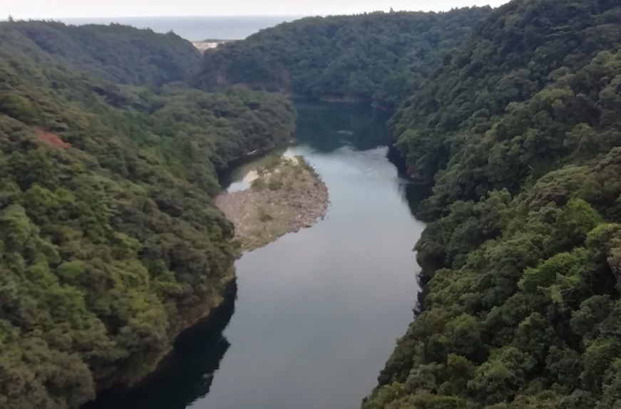 今夏 りぃちゃんがサップボードした川の風景 真上から